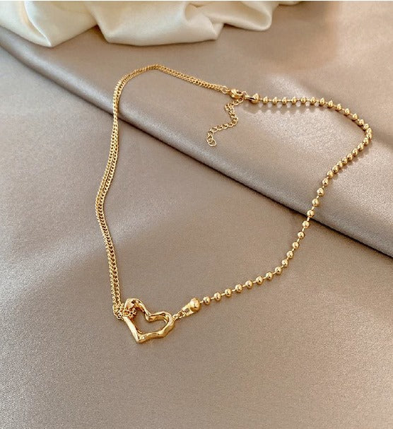 Elevate your style with this elegant dual-chain heart necklace. Designed with a combination of smooth...
