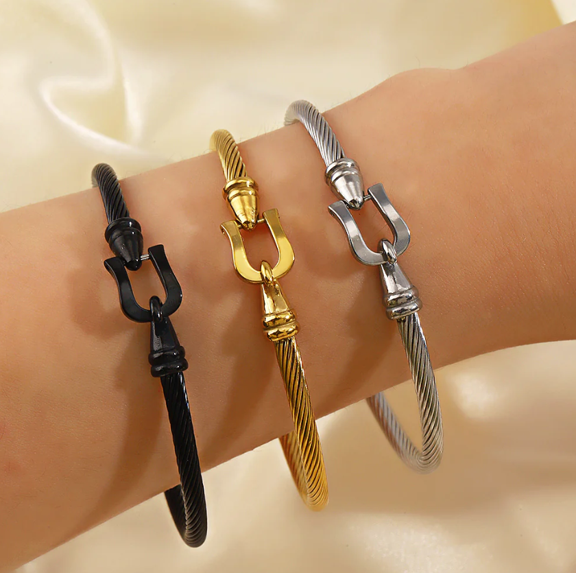 Elevate your wrist game with this modern cable cuff bracelet, available in 18K gold plating, silver plating,...