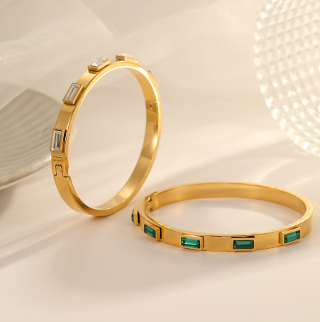 - Design: Stunning baguette-cut gemstones available in emerald green or brilliant clear