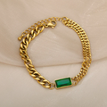 Add a bold touch to your collection with this stunning Emerald Gold Chain Bracelet. Featuring a vibrant rectangular emerald-colored stone set in a sleek, polished gold-plated chain, this bracelet effortlessly elevates any look.