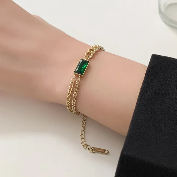 Emerald Gold Chain Bracelet