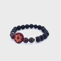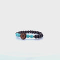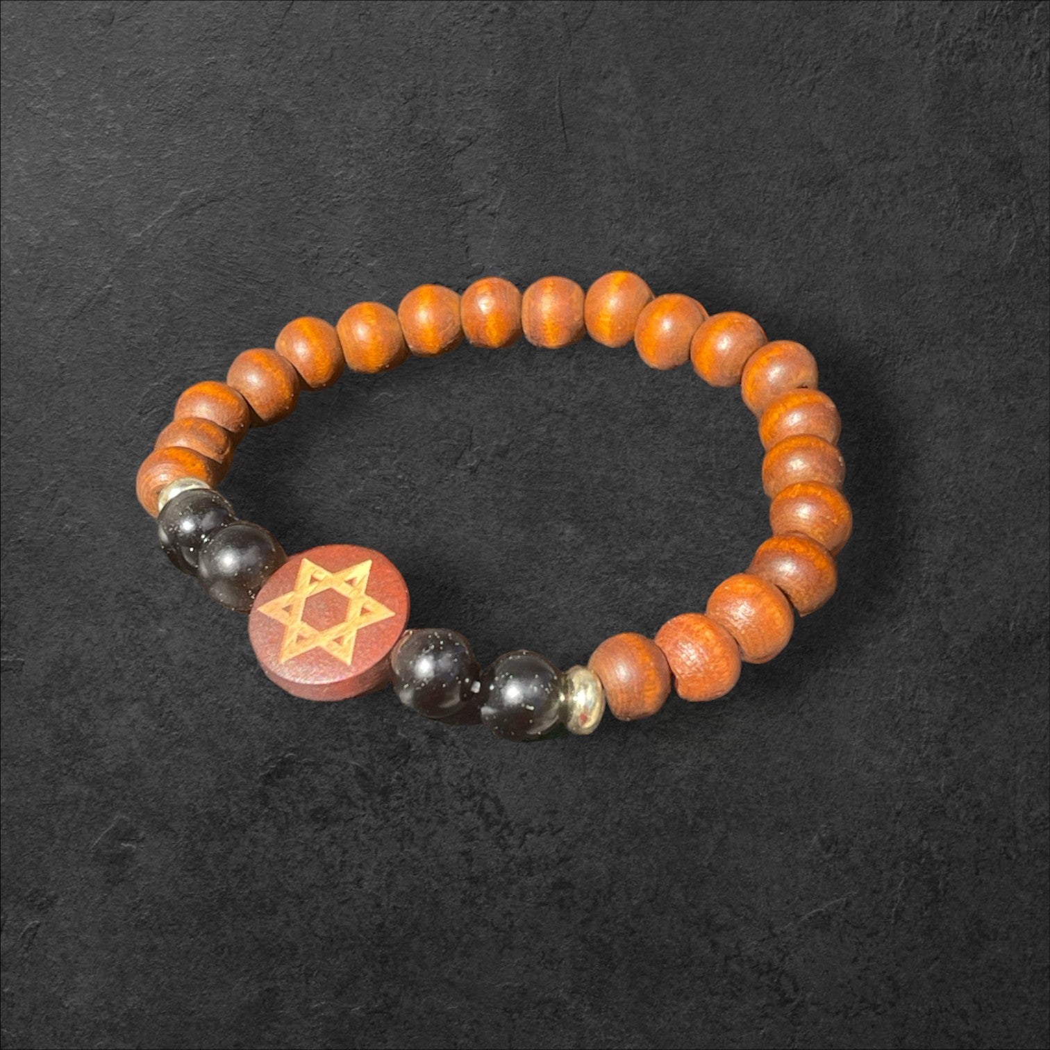 This is a natural stone bead bracelet with a Star of David charm, featuring an elastic cord to fit most wrist sizes.