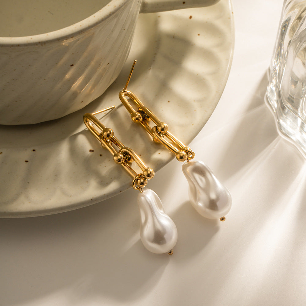 18K Gold Plated Celestial Pearl Mismatched Drop Earrings