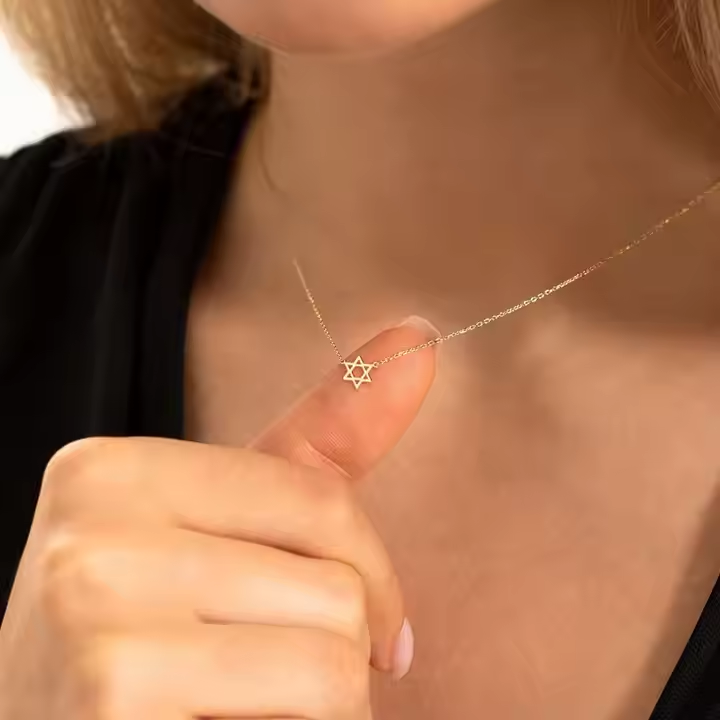 Celebrate faith and elegance with this Dainty Star of David Necklace, a timeless symbol of heritage...