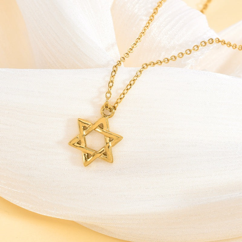 This striking necklace features a hollow Star of David pendant, crafted in high-quality stainless steel...