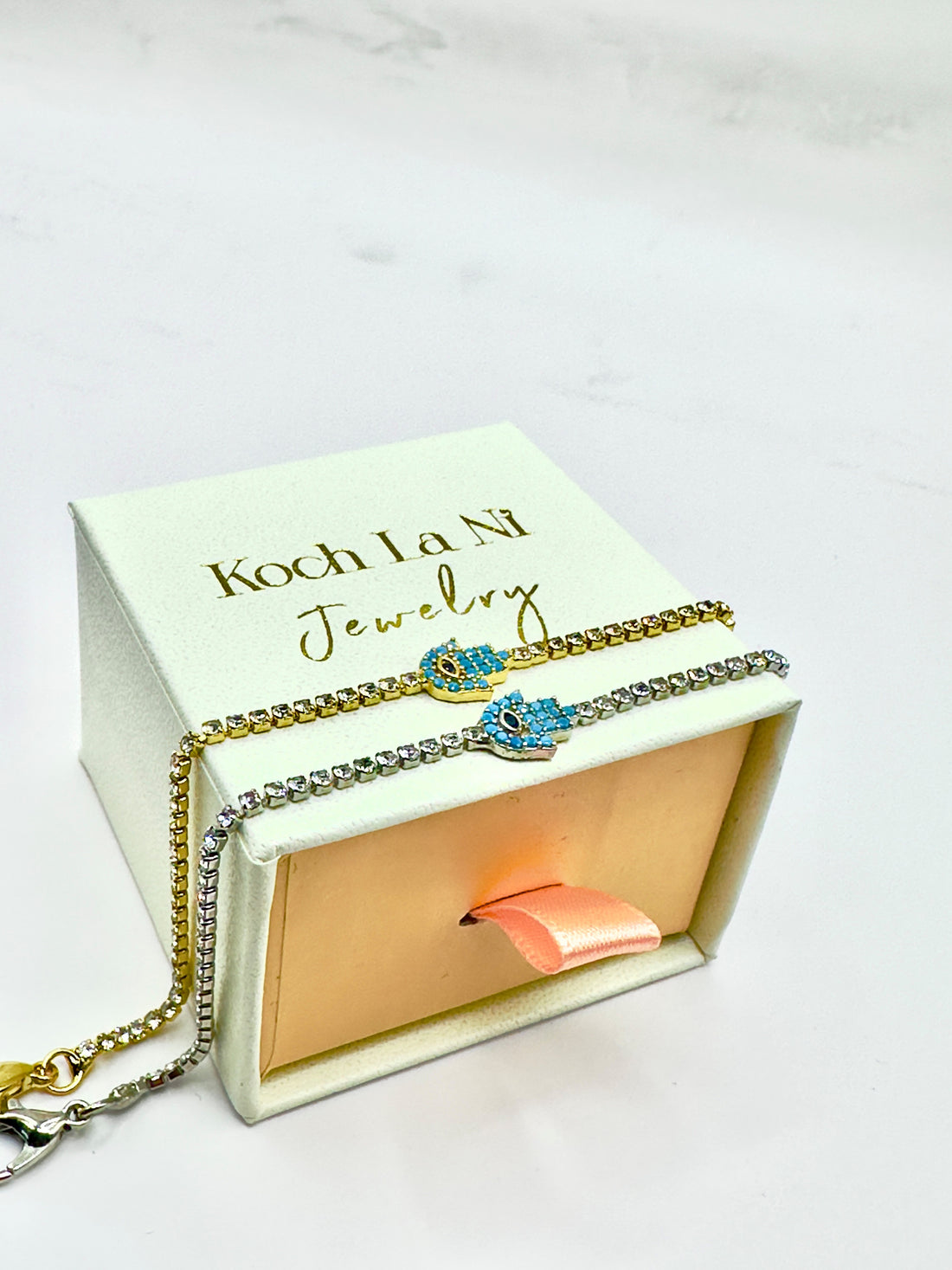 Hamsa Hand Tennis Bracelet â Gold or Silver