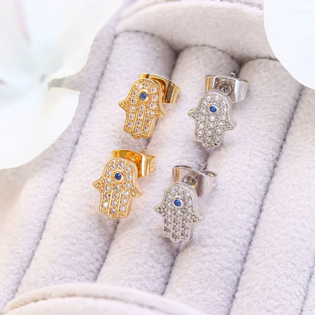 Add a touch of symbolism and sparkle to your look with these stunning Hamsa stud...