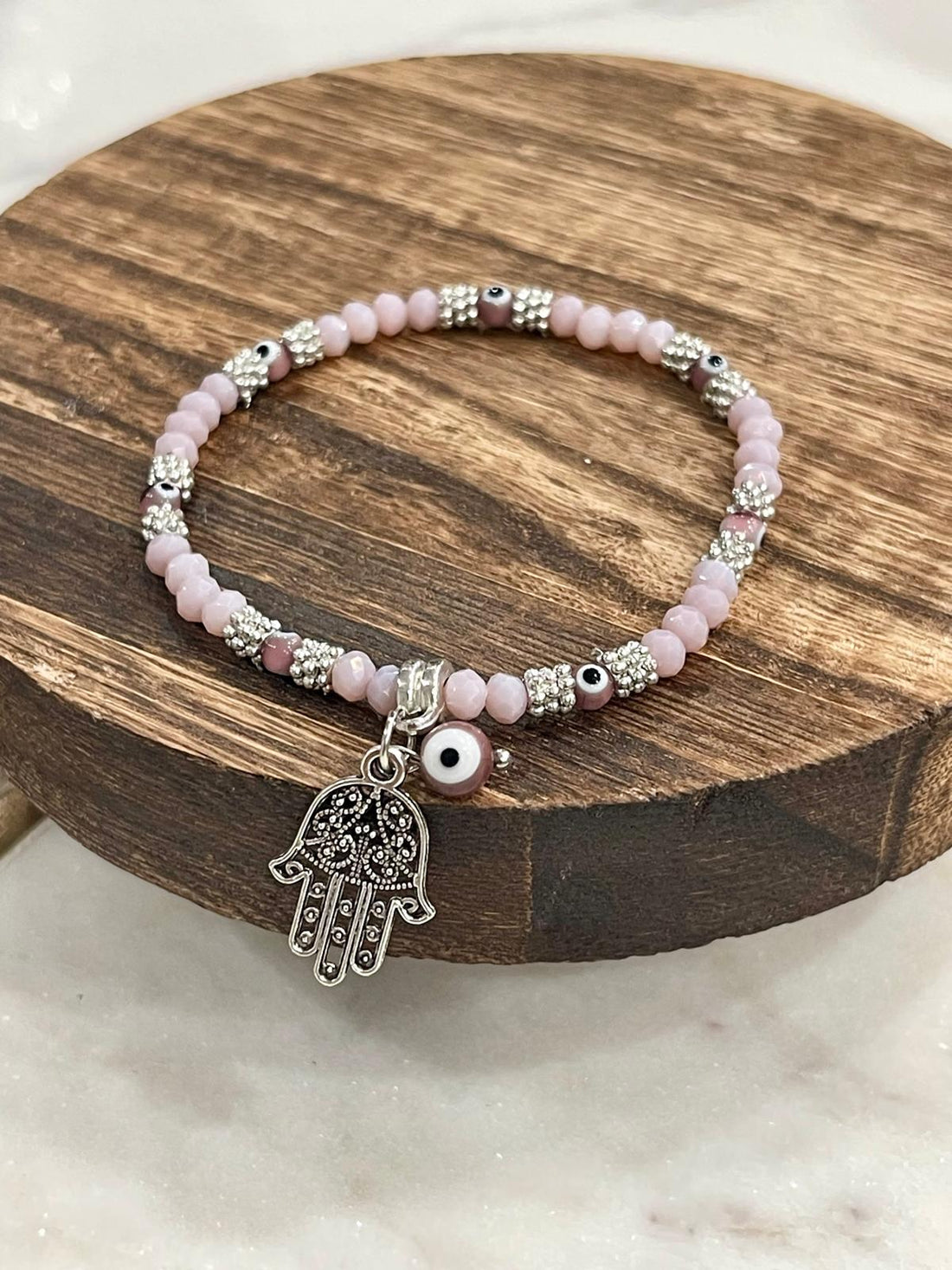 Pink Hamsa Evil Eye Beaded Bracelet Add a touch of protection and elegance to your...
