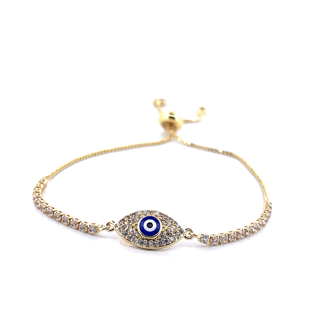 18K Gold Plated Evil Eye Tennis Bracelet with Blue and White Moissanite