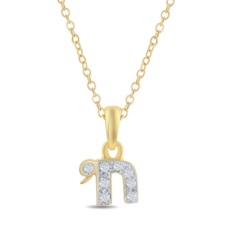 14 karat yellow gold polish-finish chai pendant enhanced with 0 05 carat of pave set diamonds sliding on a 16 rolo chain 8hx8w mm