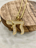 Celebrate life and blessings with this stunning 18K Gold Plated Chai Pendant Necklace. The Chai symbol, representing "life" in Hebrew, is beautifully adorned with shimmering crystals, capturing light and radiating a sense of elegance and spirituality. This exquisite pendant is a timeless piece that carries a powerful message of vitality and protection.