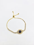 18K Gold Filled Evil Eye Tennis Bracelet with Blue and White Moissanite