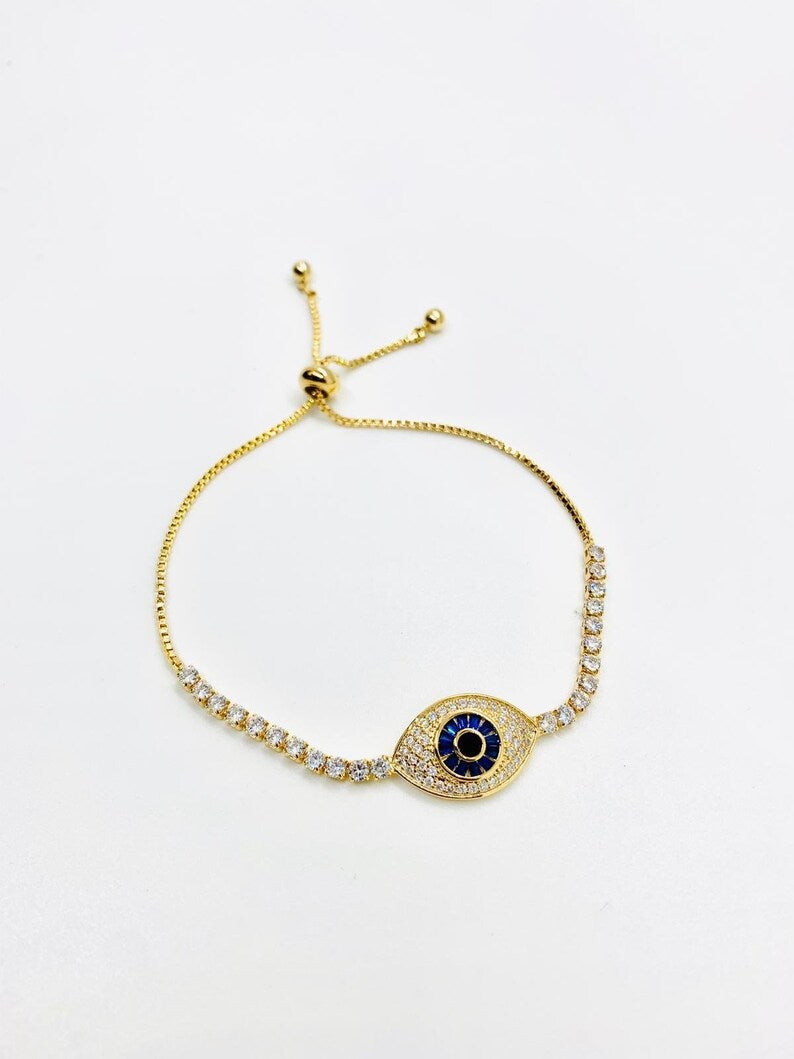This tennis bracelet is perfect for daily wear or special occasions, adding a touch of elegance and protection to your ensemble. Whether you're seeking a stylish accessory or a meaningful gift, this Evil Eye tennis bracelet is an excellent choice.