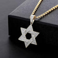 Make a bold statement with this luxurious Star of David pendant necklace, meticulously crafted to perfection. This exquisite piece features a stunning Star of David design encrusted with dazzling moissanite stones, all set in high-quality, lightweight titanium steel with an 18K gold plating.