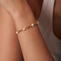 Add a touch of sophistication to your look with the 18K Gold Plated Aurelia Pearl Bracelet from Koch La Ni. This elegant piece features lustrous freshwater pearls interspersed along a high-quality 18K gold-plated stainless steel chain, creating a timeless accessory that exudes class and grace.