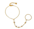 This dainty hand chain bracelet combines elegance and durability. Featuring a unique design that connects a bracelet to a ring, it is crafted from high-quality stainless steel with 18K gold plating. The waterproof and non-tarnish finish ensures lasting brilliance, making it perfect for any occasion.