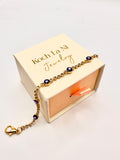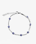 This elegant bracelet features deep-blue Evil Eye charms set between rows of clear crystals on a radiant tennis chain. Symbolizing protection and positivity, it’s available in 18K gold or silver finish — perfect for stacking or everyday wear.