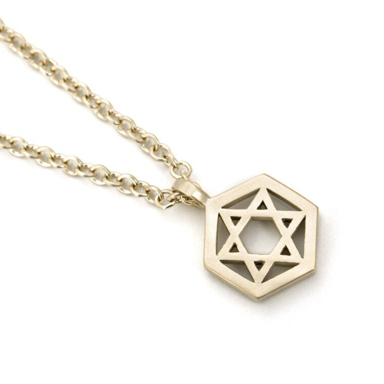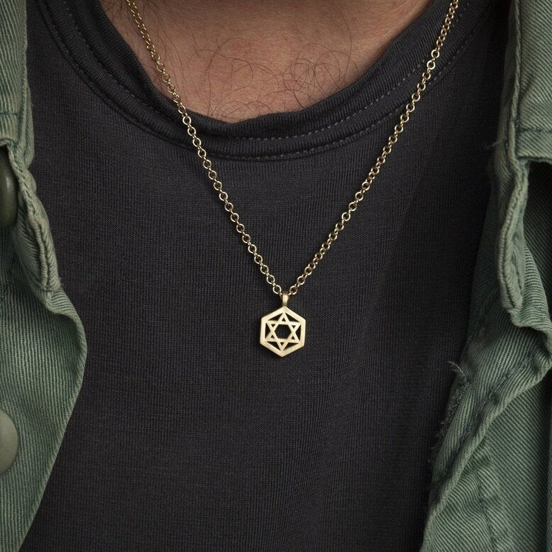- Design: Geometric Star of David pendant with a minimalist design