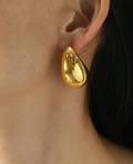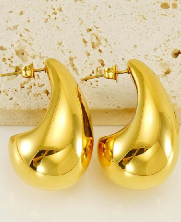 Make a bold statement with these stunning Gold Teardrop Statement Earrings. Featuring a sleek, polished teardrop design, these earrings add a touch of modern sophistication to any outfit. Crafted from high-quality gold-plated stainless steel, they are lightweight and comfortable for all-day wear.