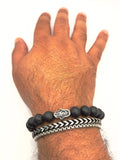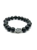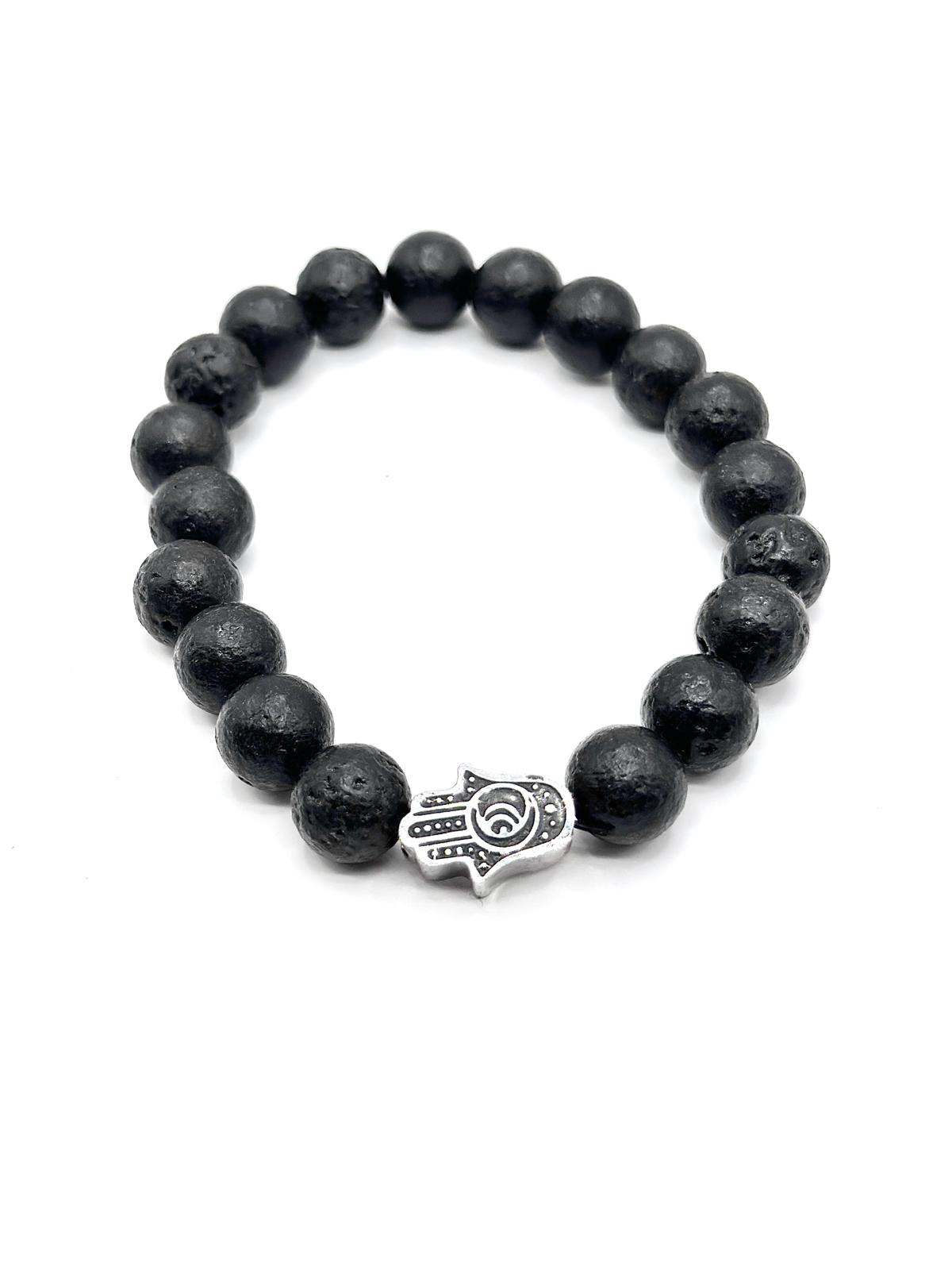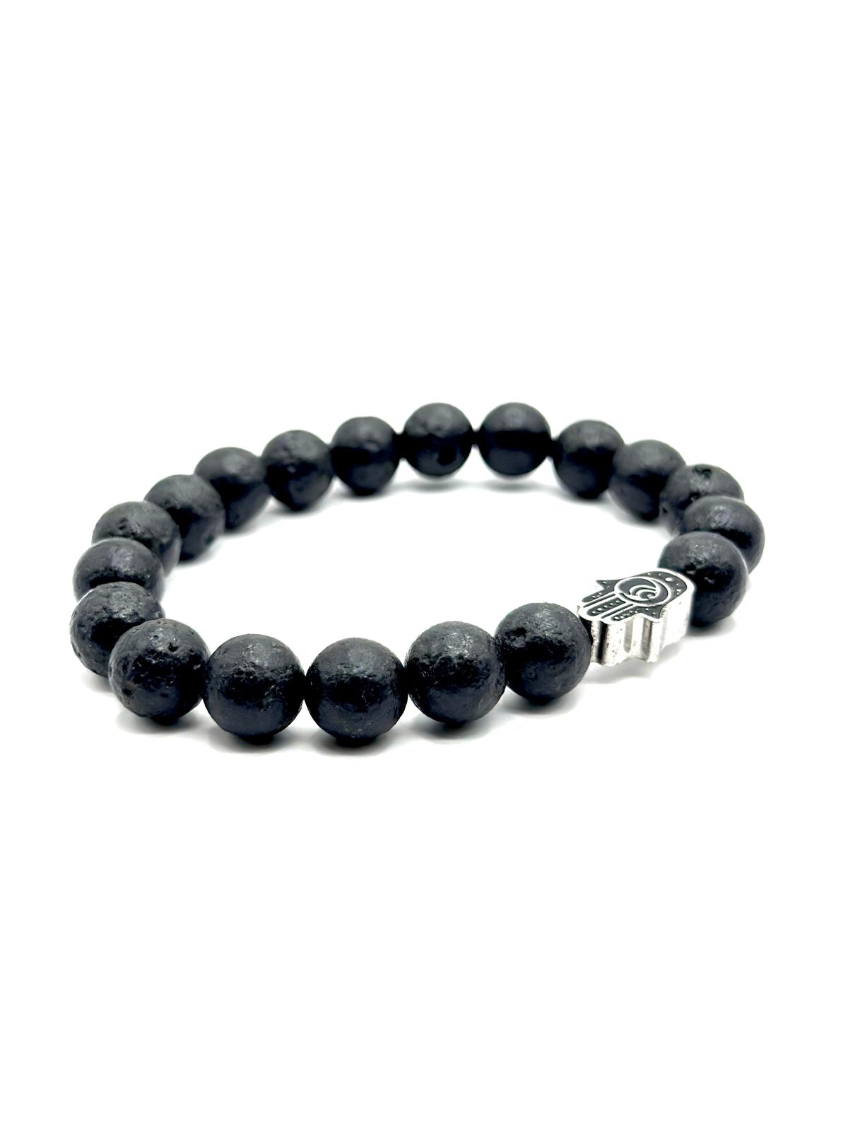 The Hamsa Beaded Bracelet features genuine black lava stones known for their natural strength and calming energy, paired with a detailed silver-tone Hamsa charm — a symbol of protection and good fortune. Effortlessly stylish and easy to wear every day.