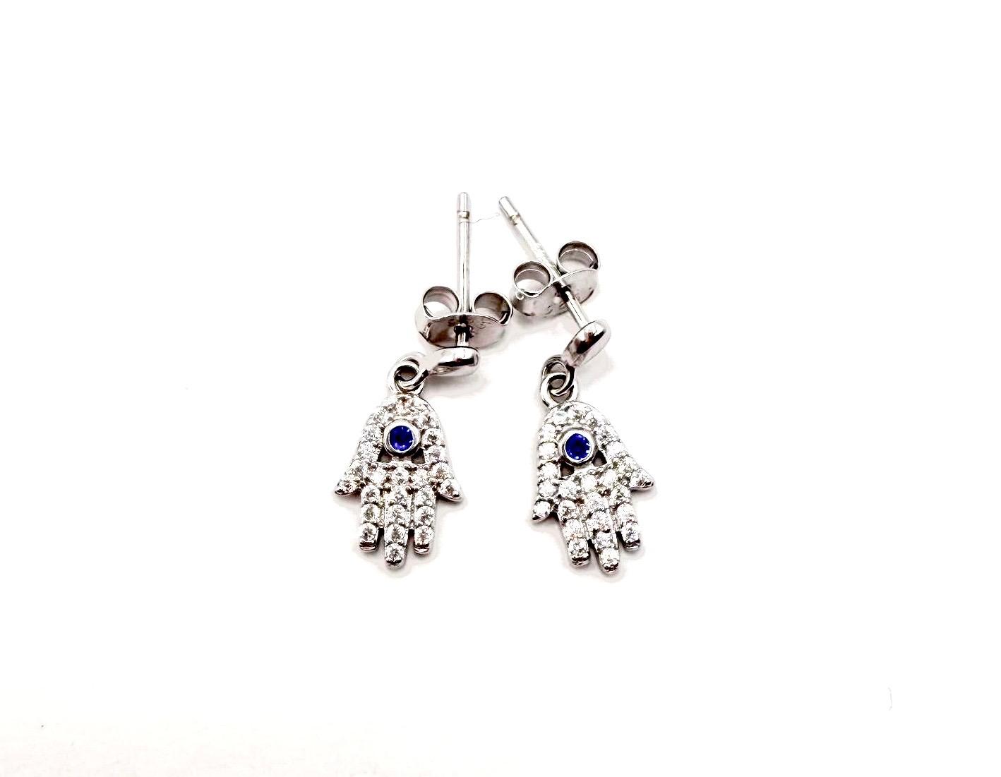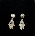 Hamsa Drop Earrings with Blue Crystal – Sterling Silver