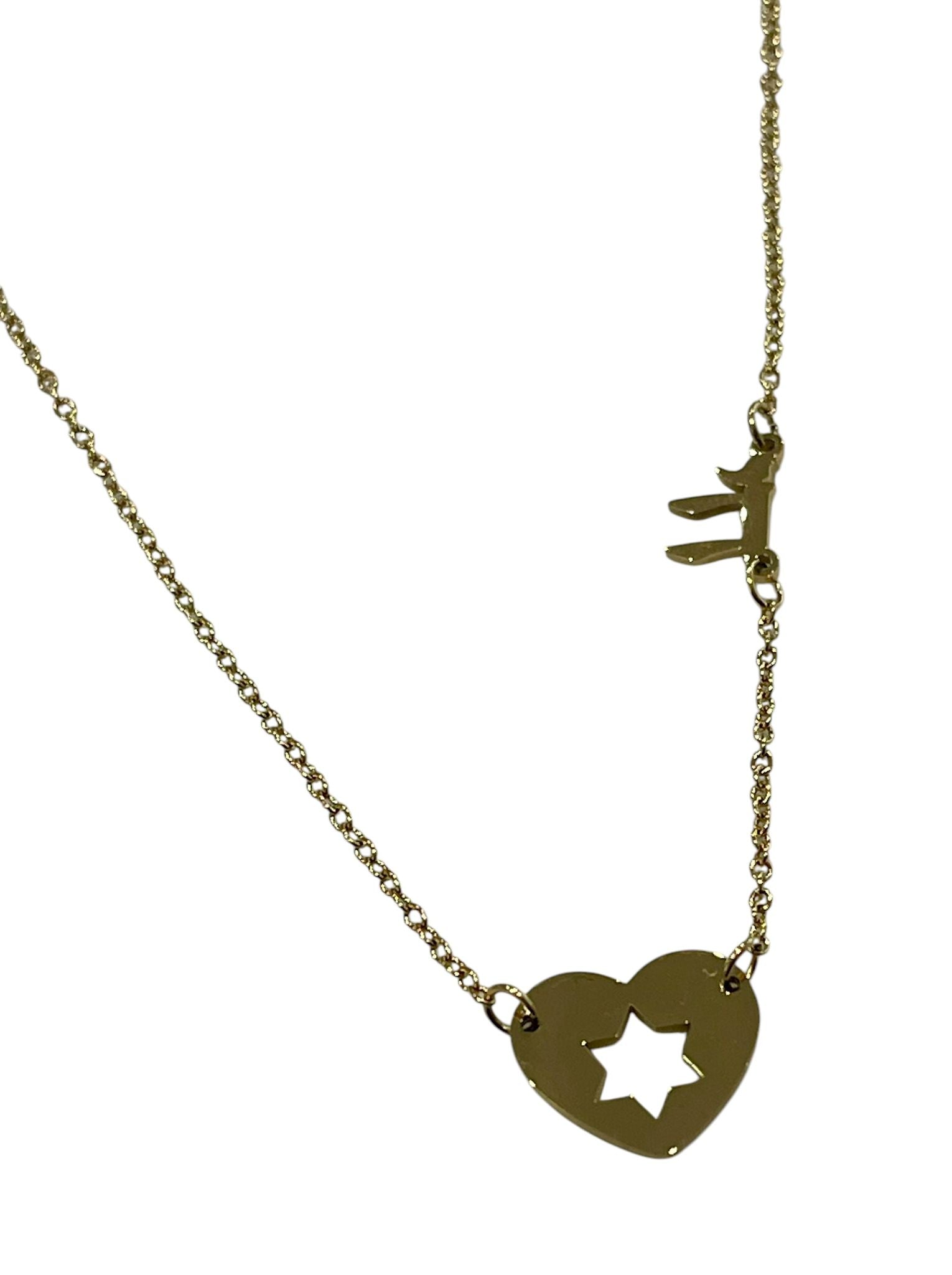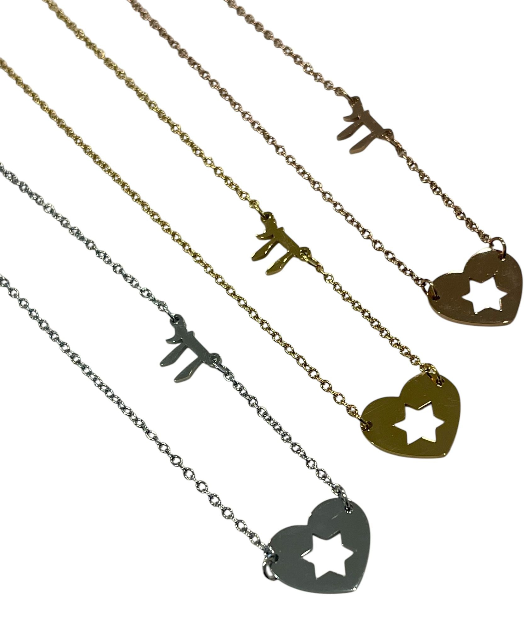 - Pendant Design: Heart with Star of David cutout and "Chai" symbol