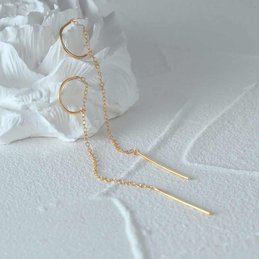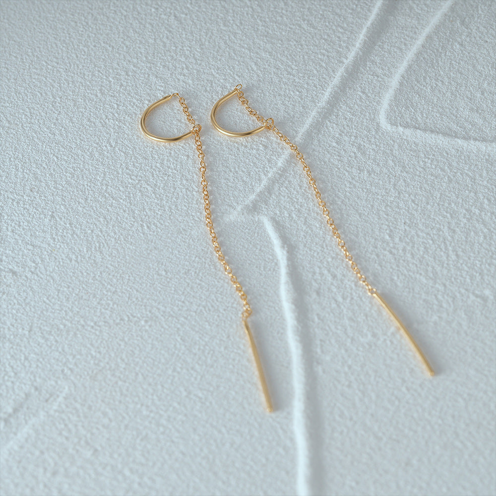 Linear Drop Chain Earrings - Gold