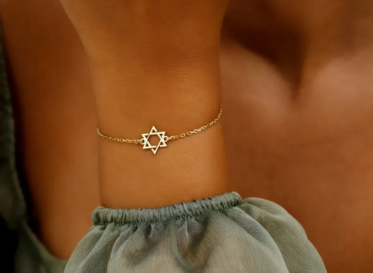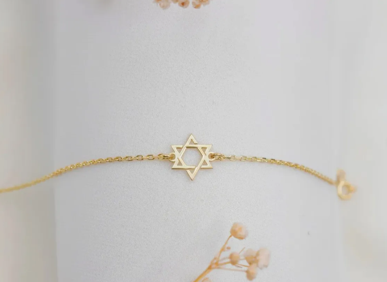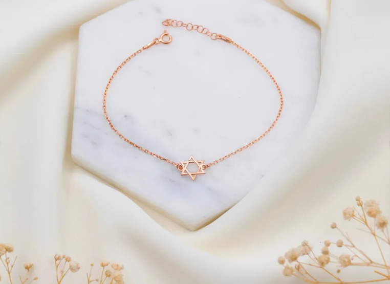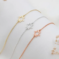 This elegant bracelet features a 12mm Star of David charm on a delicate cable chain, available in three finishes: Gold, White Gold, and Rose Gold.