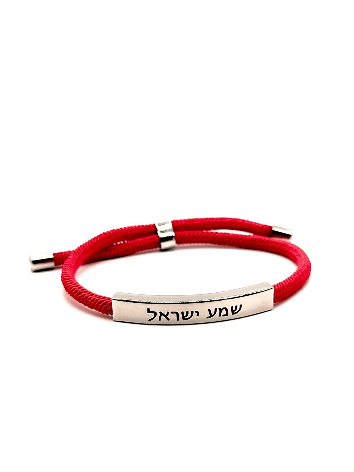 The Shema Israel Cord Bracelet features the Hebrew engraving שמע ישראל (“Hear, O Israel”) on a polished stainless-steel bar, paired with an adjustable cord for a modern, comfortable fit. A subtle yet powerful reminder of connection, strength, and heritage.