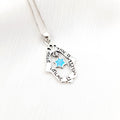 Showcase your faith with the Shema Israel Hamsa Necklace with Star of David & Blue Opal. This exquisite necklace features a beautifully crafted Star of David pendant with a blue opal center, set in sterling silver, and inscribed with the Shema Israel verse in Hebrew script.