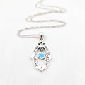 Shema Israel Hamsa Necklace with Star of David & Blue Opal