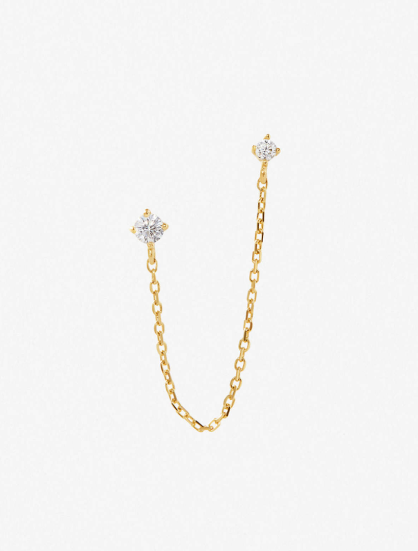 A minimalist 3-piece set featuring two crystal stud earrings and a double piercing chain earring. Clean, modern, and perfect for creating an elevated ear stack.