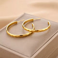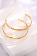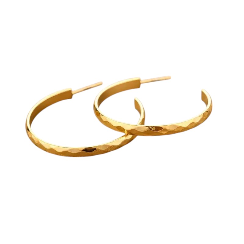 Sleek open hoops with a hammered finish in polished gold-tone. Lightweight and versatile for both everyday wear and elevated looks.