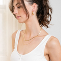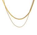 Two elegant chains in one minimalist piece. This 18K gold-plated necklace features a smooth snake chain paired with a delicate fine chain. A go-to layering essential.