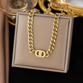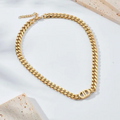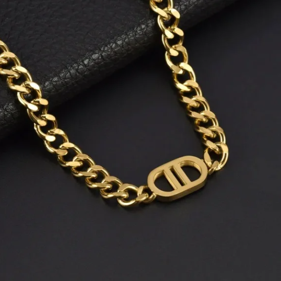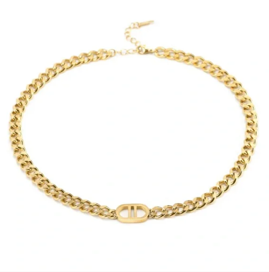A bold curb chain with a sleek geometric centerpiece, finished in 18K gold plating. Striking on its own or layered.