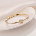Sleek and modern cuff crafted in 18K gold-plated titanium, featuring pavé CZ crystal accents. Lightweight, durable, and perfect for stacking.