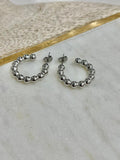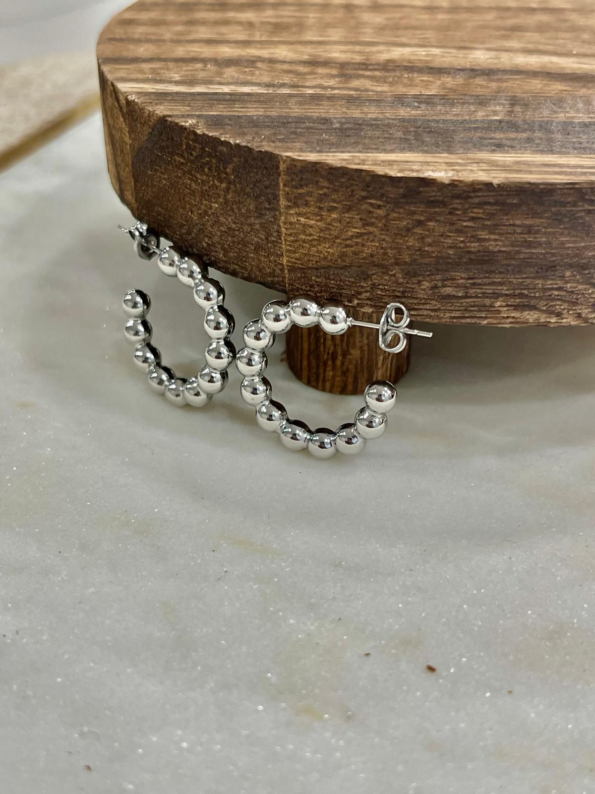 Sleek open hoops with a polished ball design. Lightweight, modern, and perfect for everyday wear. Available in gold-tone and silver-tone.