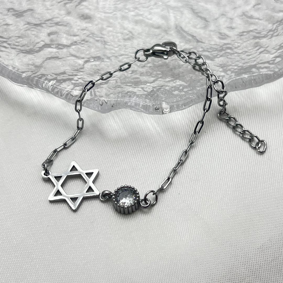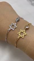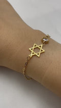 This elegant bracelet pairs a dainty Star of David with a sparkling crystal accent on a refined link chain. Available in 18K Gold-Plated or White Gold-Plated finishes.