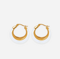 Add a touch of elegance to your look with these stunning White and Gold Hoop Earrings. The unique combination of glossy white enamel and luxurious 18K gold plating creates a modern yet timeless design that stands out effortlessly.