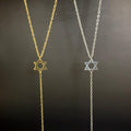 This lariat necklace is perfect for both everyday wear and special occasions, adding a touch of sophistication and cultural significance to your ensemble. Whether you're celebrating your heritage or looking for a meaningful gift, this Star of David lariat necklace is an exceptional choice.