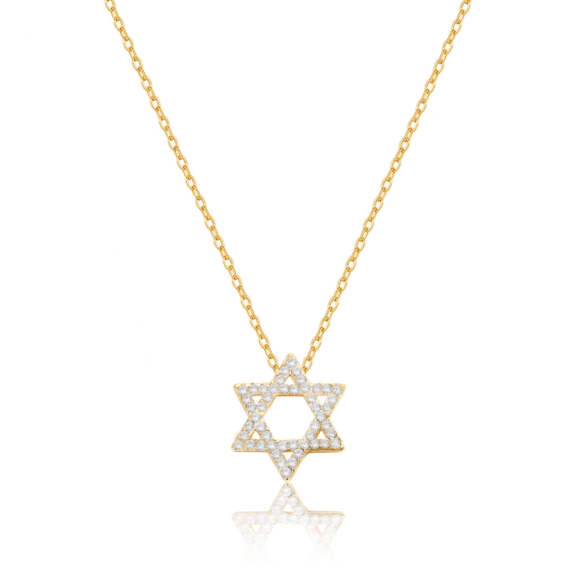 Shine brightly with this 18K Gold Plated Star of David Necklace, encrusted with sparkling crystals. This stunning piece combines elegance and tradition, featuring a finely crafted Star of David pendant adorned with brilliant crystals, making it a perfect accessory for both special occasions and everyday wear.