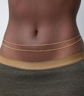 This double-layer waist chain pairs a delicate bead chain with a smooth rope chain, creating subtle movement and just enough shine to draw the eye. Designed to sit low on the waist, it traces your curves effortlessly—whether styled over denim, swim, or nothing at all.