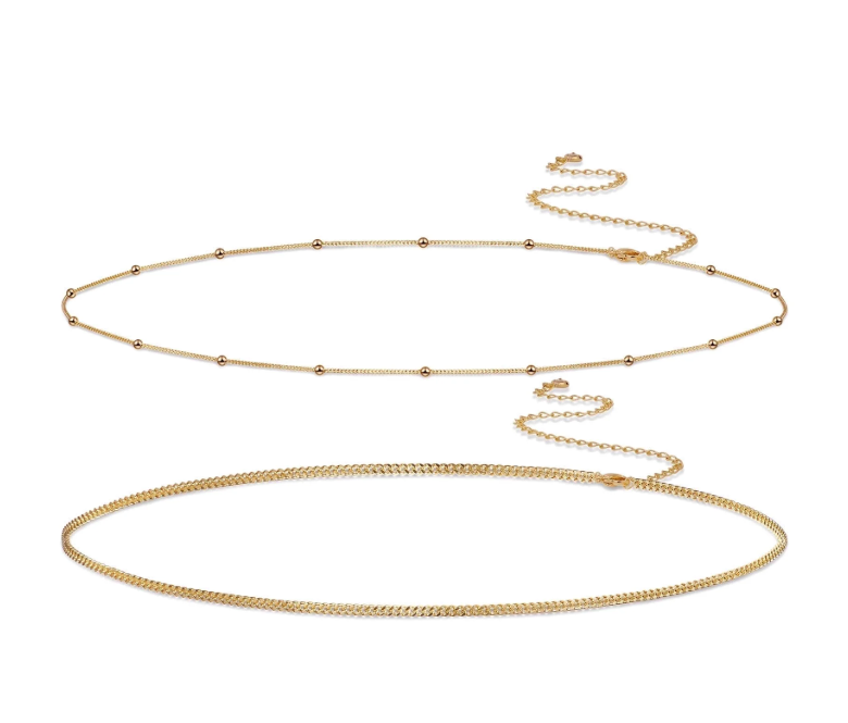 Designed to sit low and move with you, this double-layer waist chain is all about subtle heat. A sleek Figaro chain pairs with a delicate beaded strand, creating contrast that catches the light—and attention—without trying too hard.